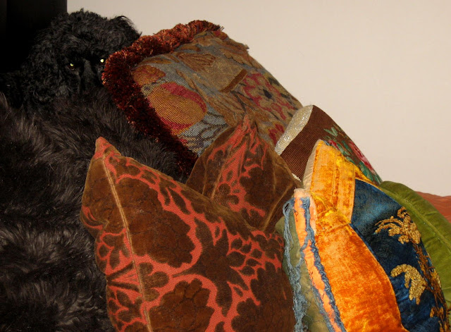 Miss Kiki likes the warm fussy, fuzzy winter pillows.